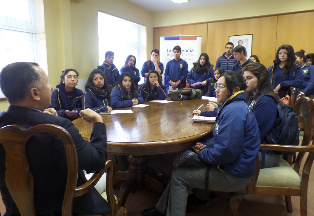 Estudiantes de cuarto medio de la especialidad de administración del Liceo Técnico Profesional de Río Bueno visitaron la intendencia de Los Ríos, en el marco del Programa Regional de Formación Ciudadana implementado por el intendente Egon Montecinos, para fortalecer el conocimiento del rol y funciones de las instituciones del Estado entre los escolares de la región.